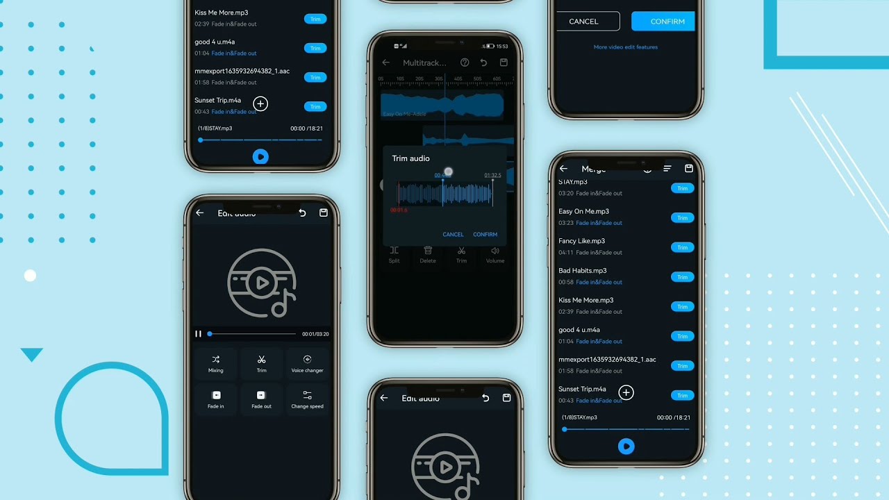 Music Editor: Sound Audio Editor & Mp3 Song Maker for Android is a great application, produced tried and tested developer HappyBees&Screen Voice Recorder&Video Music Editor. For installation application you must test your software version, desirable system compliance programs depends from installable version. For your device - Requires Android - 5.0 and up. Serious take a look to this criterion, because it is primary requirement programmers. Then evaluate presence at given device empty space memory, for you smallest volume - 29M. Recommend your release more space, than needed. In progress operation application information will be to be written to memory, that will increase final size. Unload all kinds of stupid photos, cheap videos and unplayable applications. Hack Music Editor: Sound Audio Editor & Mp3 Song Maker for Android, filled version - 2.3.1, at page avaible correction from January 18, 2022 - download updated version, where were removed errors and hiccups.